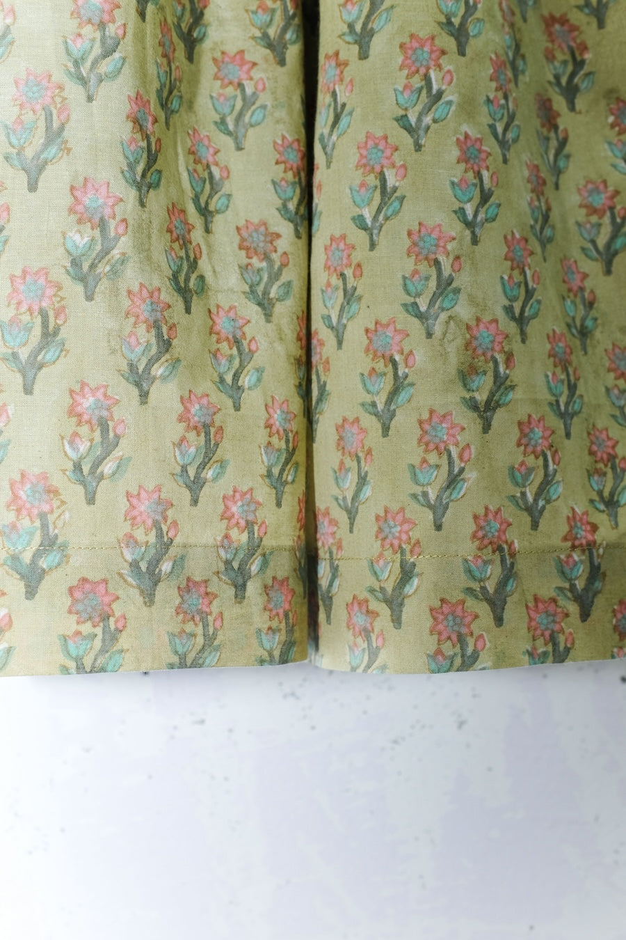 Please avoid using any harsh detergents/chemicals while washing. A gentle hand wash in cold water is preferred. Iron only on the reverse side of the garment.